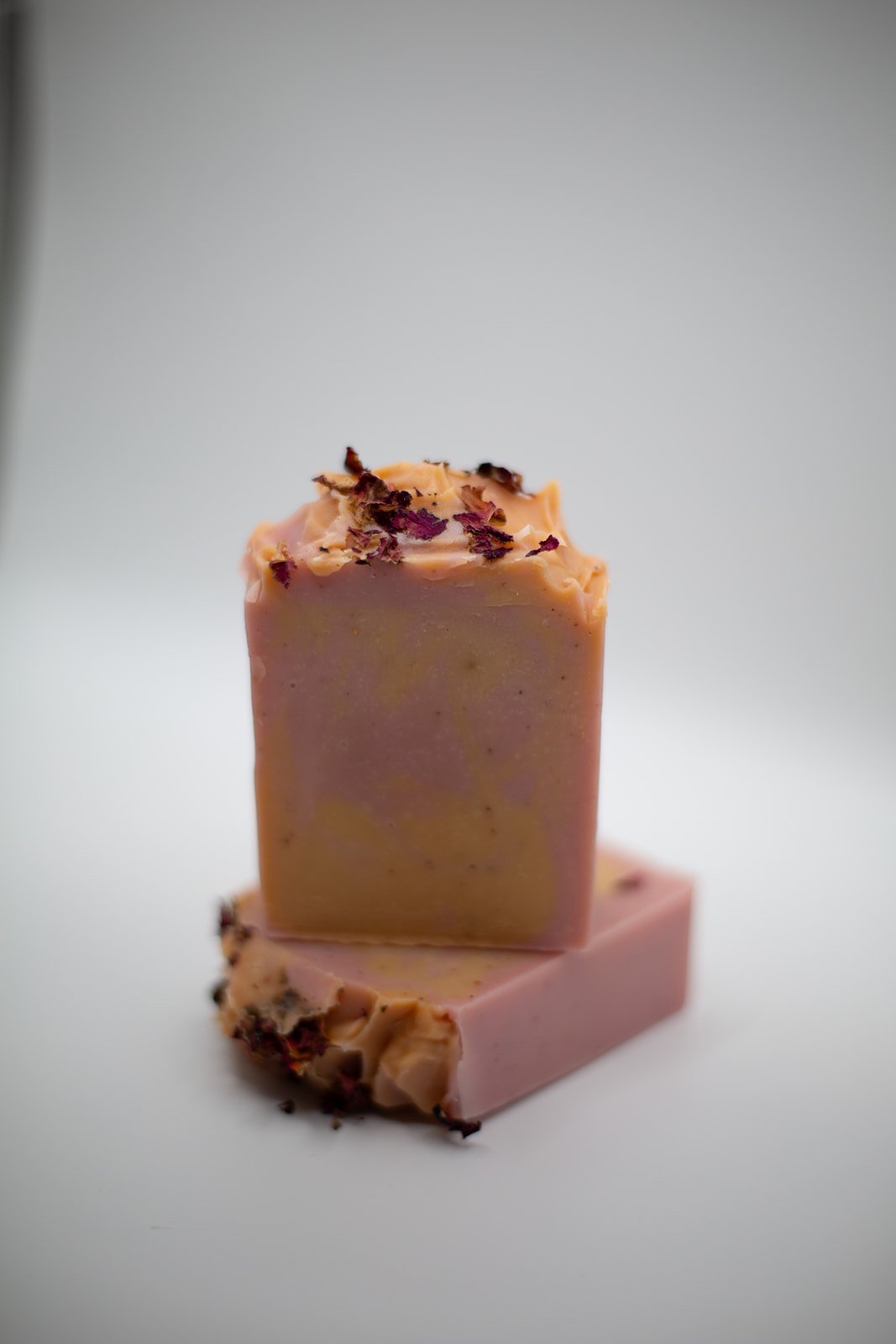 A soap with a sweet scent that gently nourishes and cleans the skin; made with rich moisturizing ingredients that are suitable for all skin types.